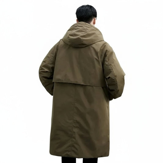 Men's Long Waterproof Puffer Trench Coat with Hood