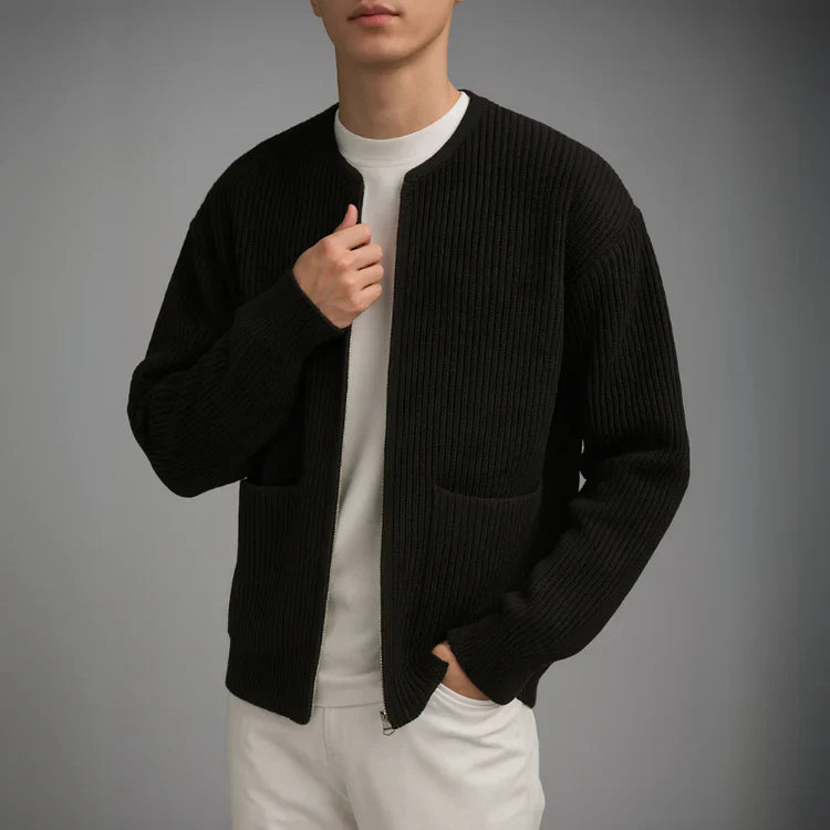 Oliver Knit Zip Cardigan – Effortless Texture, Modern Ease